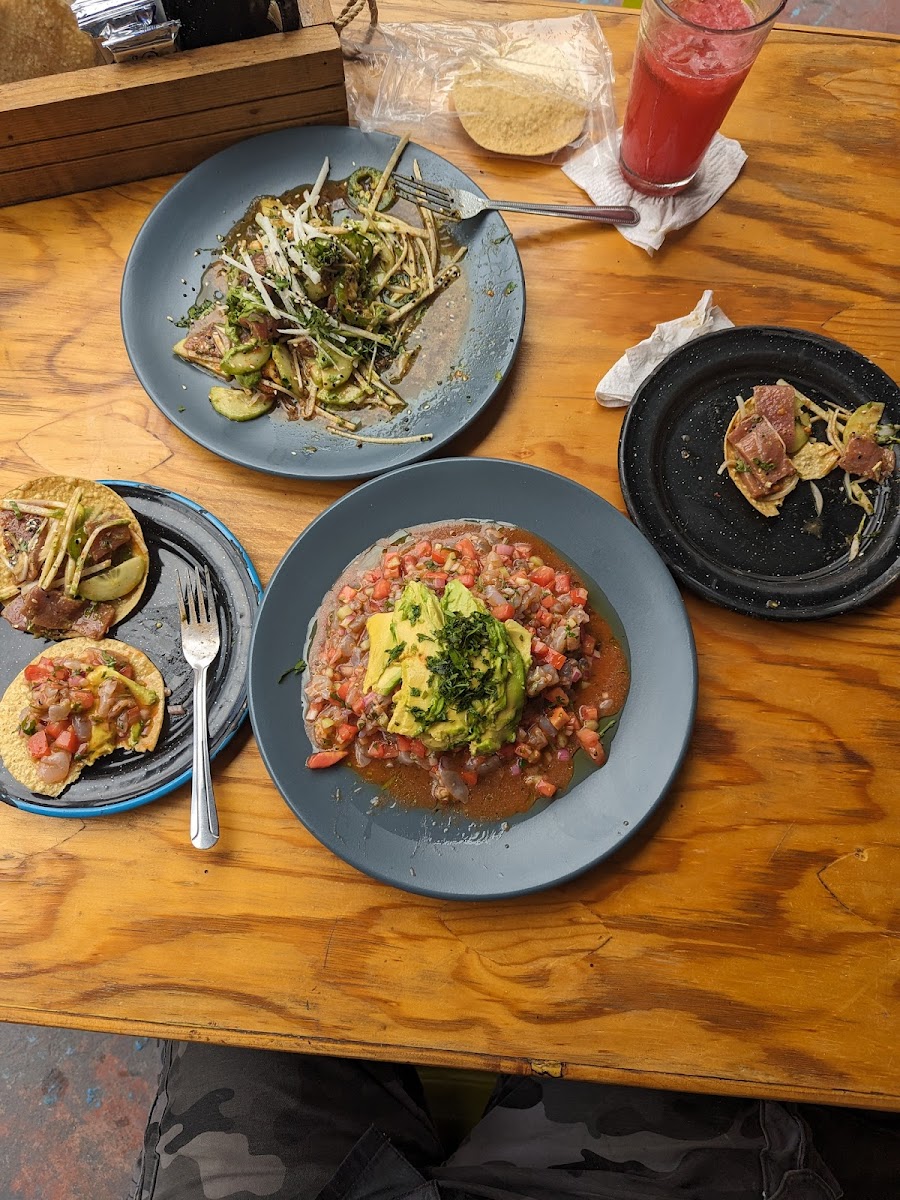 Update 2024: The new location is lovely. Nice patio on the main street with some inside seating as well. The tuna chicharrón and tuna carnitas tacos are insanely good. I could pop those tuna chicharrón nuggets like popcorn!! Love the fresh salsa bar. All I can say is get the Zarandeado shrimp! It was absolutely delicious and a very large portion. Beautiful outdoor seating with lots of covered area. Extremely friendly staff. Delicious margaritas. Street parking only.